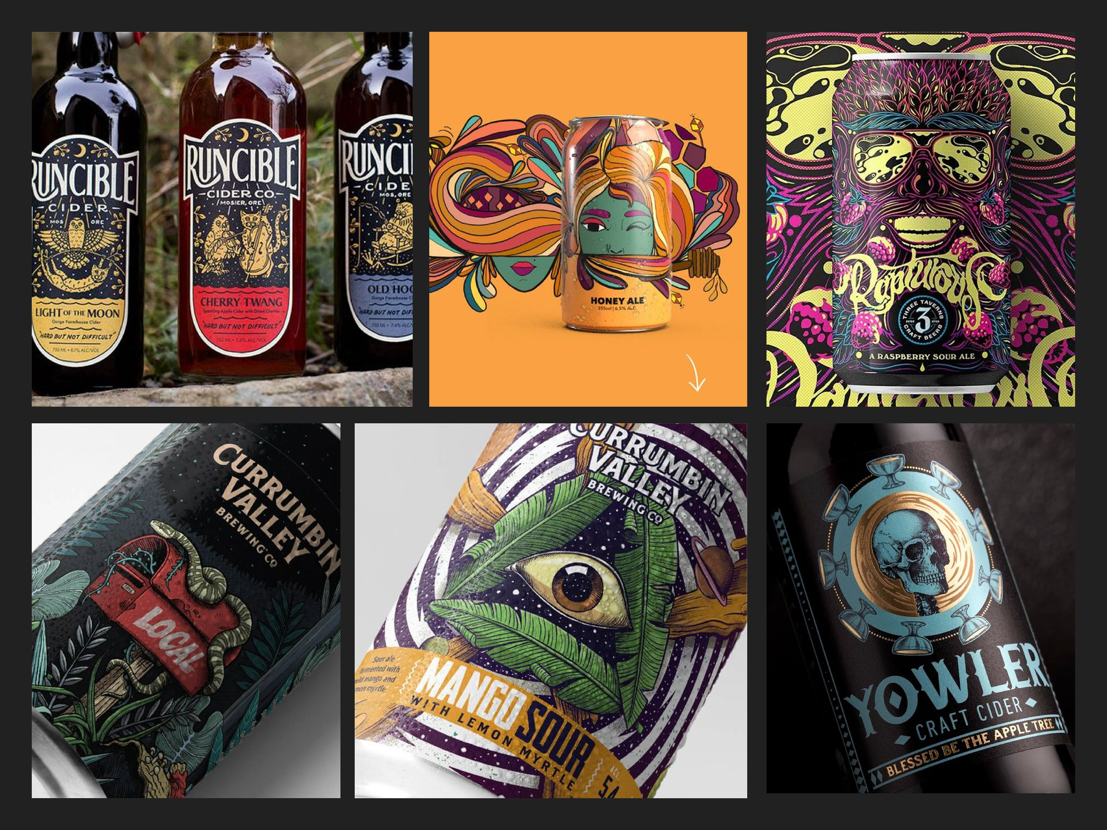 Like many craft beers and ciders, I wanted to give my ale an edgy-cool angle by adding a bright, funky, high-contrast vector illustration to the front label. This approach works well with some of the swords and sorcery-style medieval fantasy comic book inspiration used for the foundation of the brand's visual language.