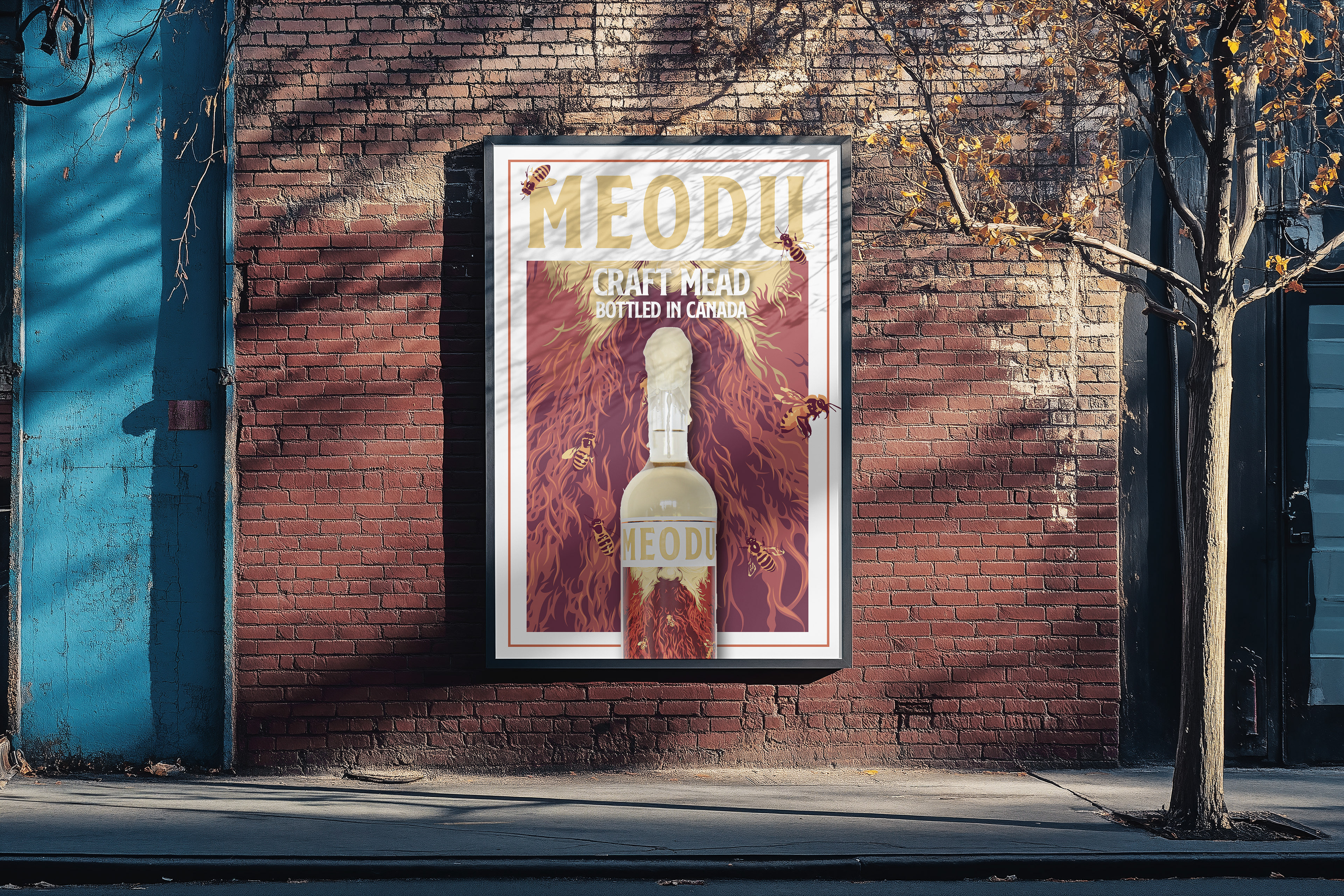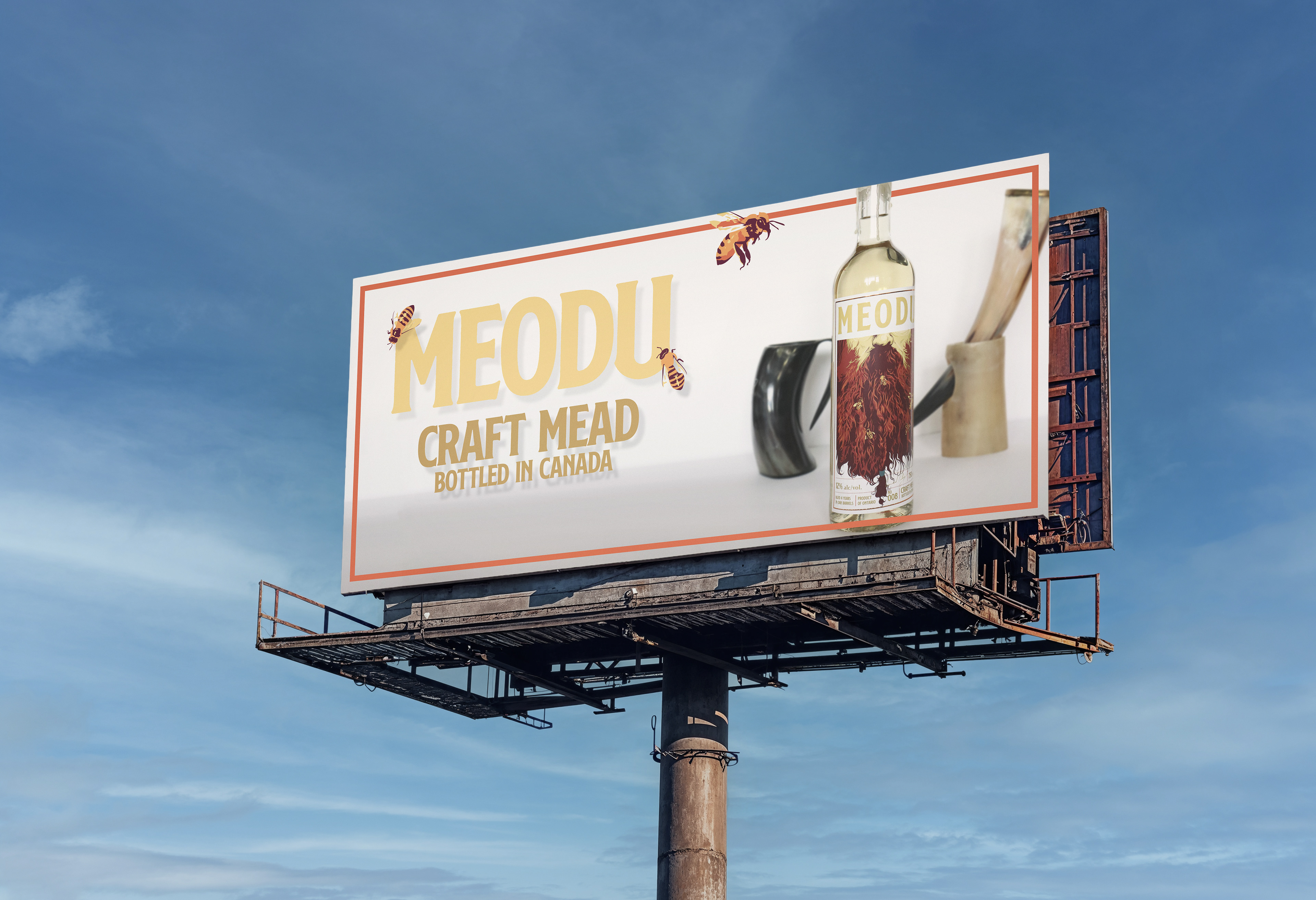 Brewed, bottled, and branded for cultured fellas, this drink has to hold its own. The solid foundation of fat typefaces found gridlocked across whiskeys, scotches, and ryes inspired the firm foundation for Meodu's typographic treatment.