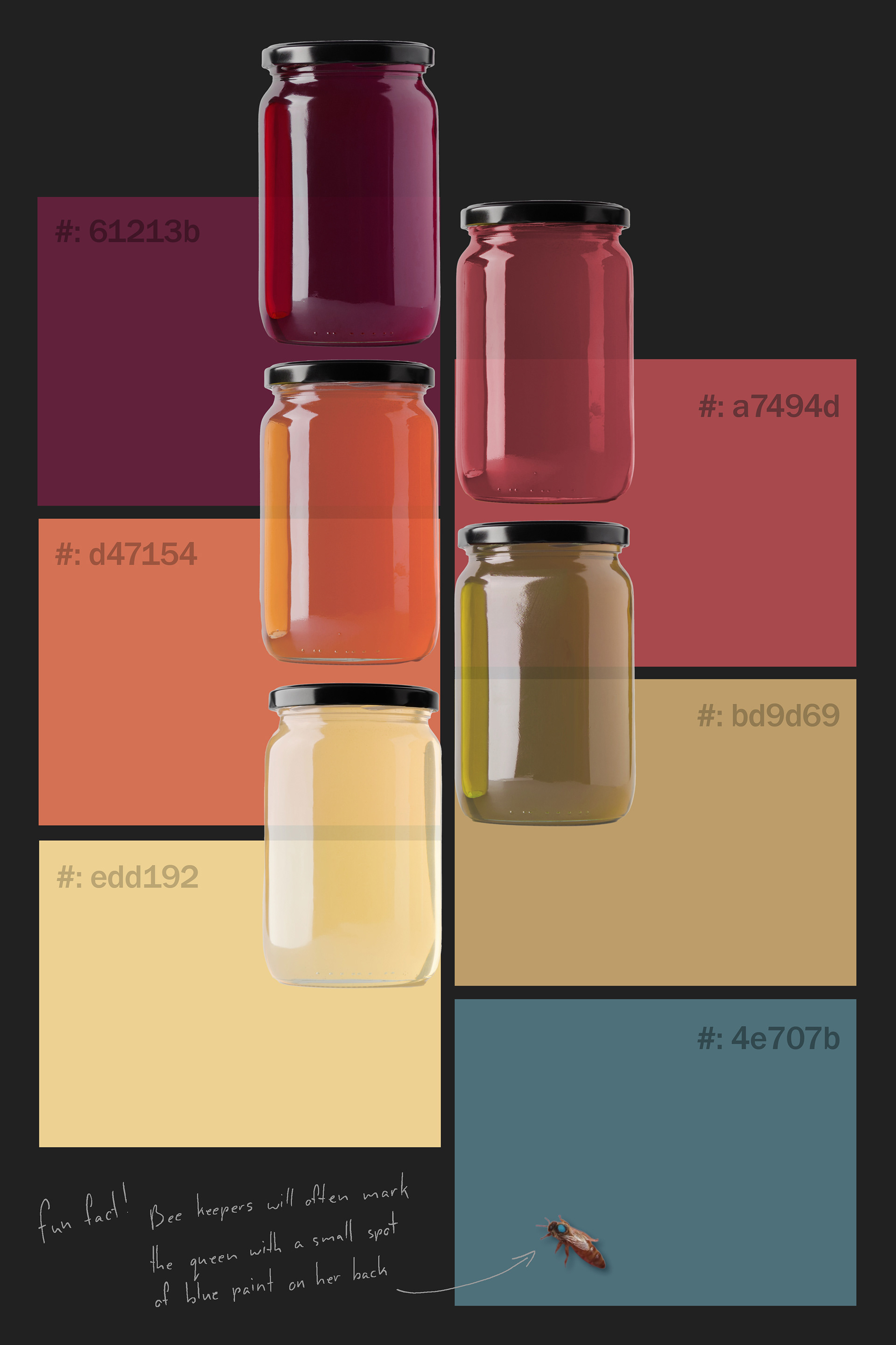 The colour palette for Meodu is based roughly on the hues of yellow and amber seen in different kinds of honey. Plus, a little bit of blue for contrast.