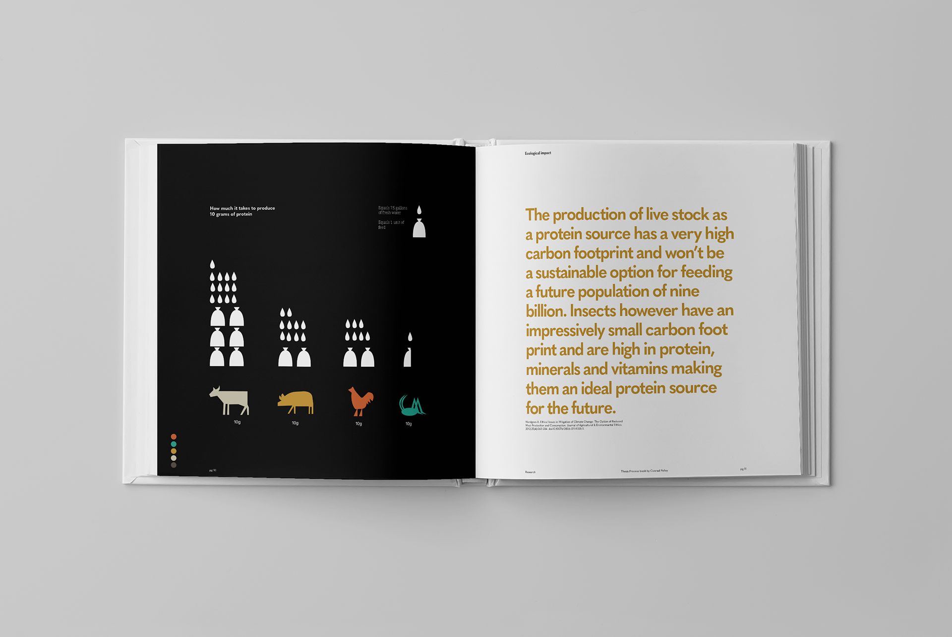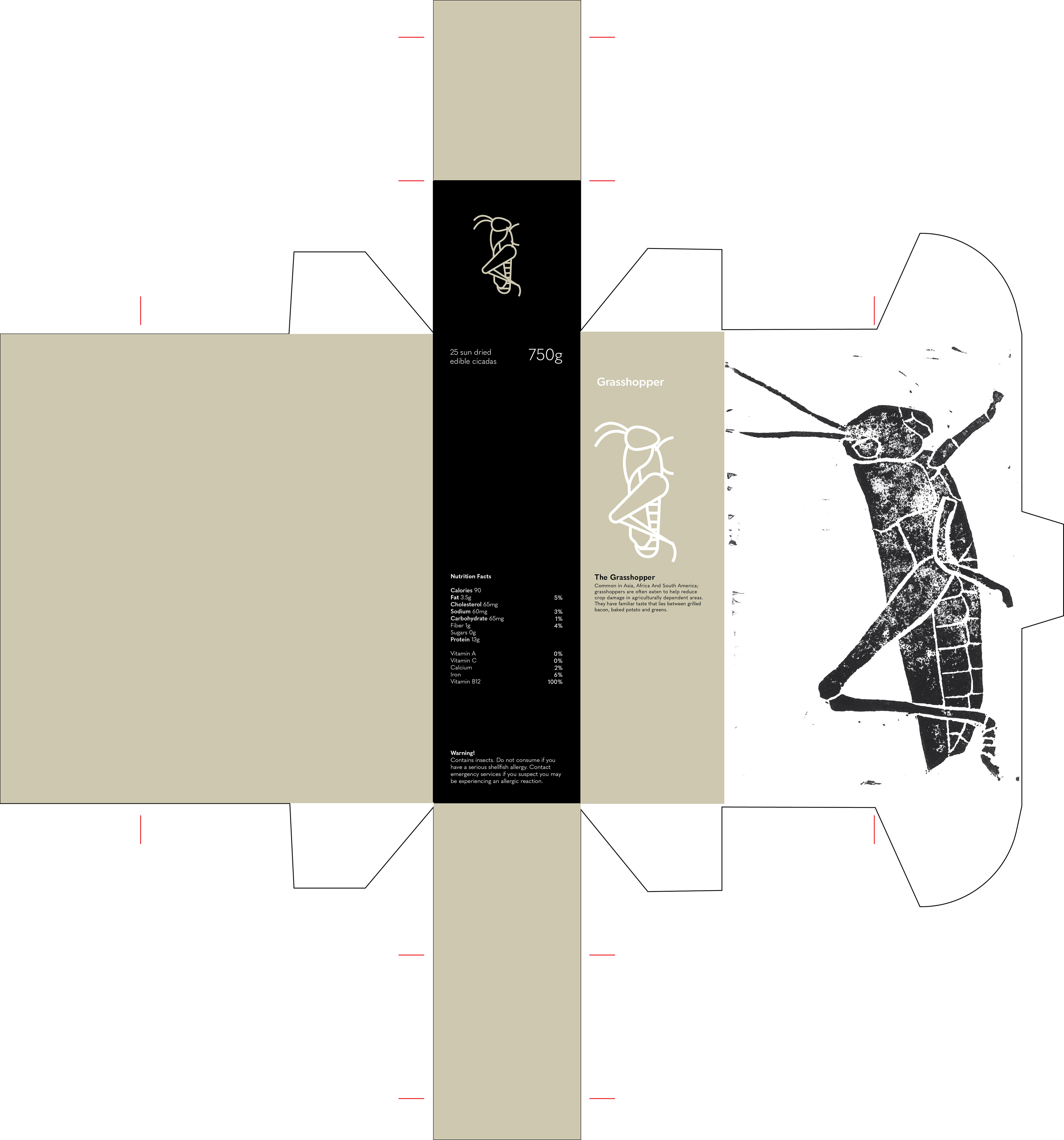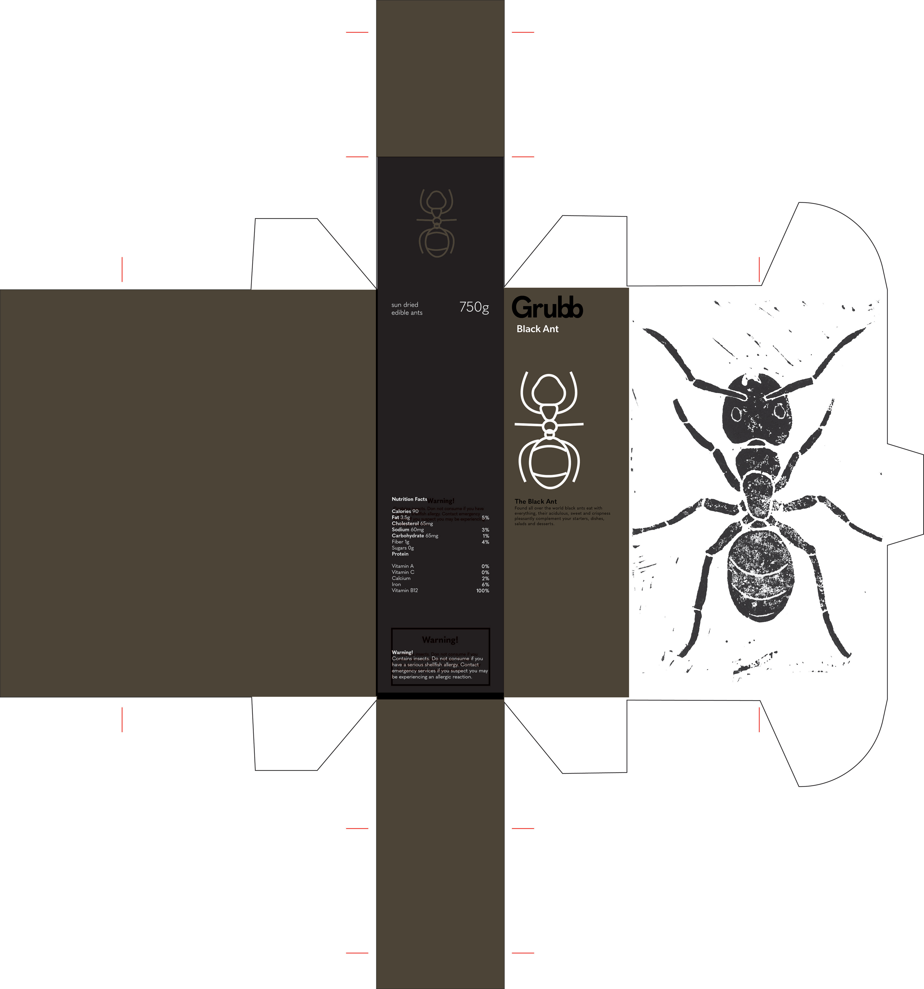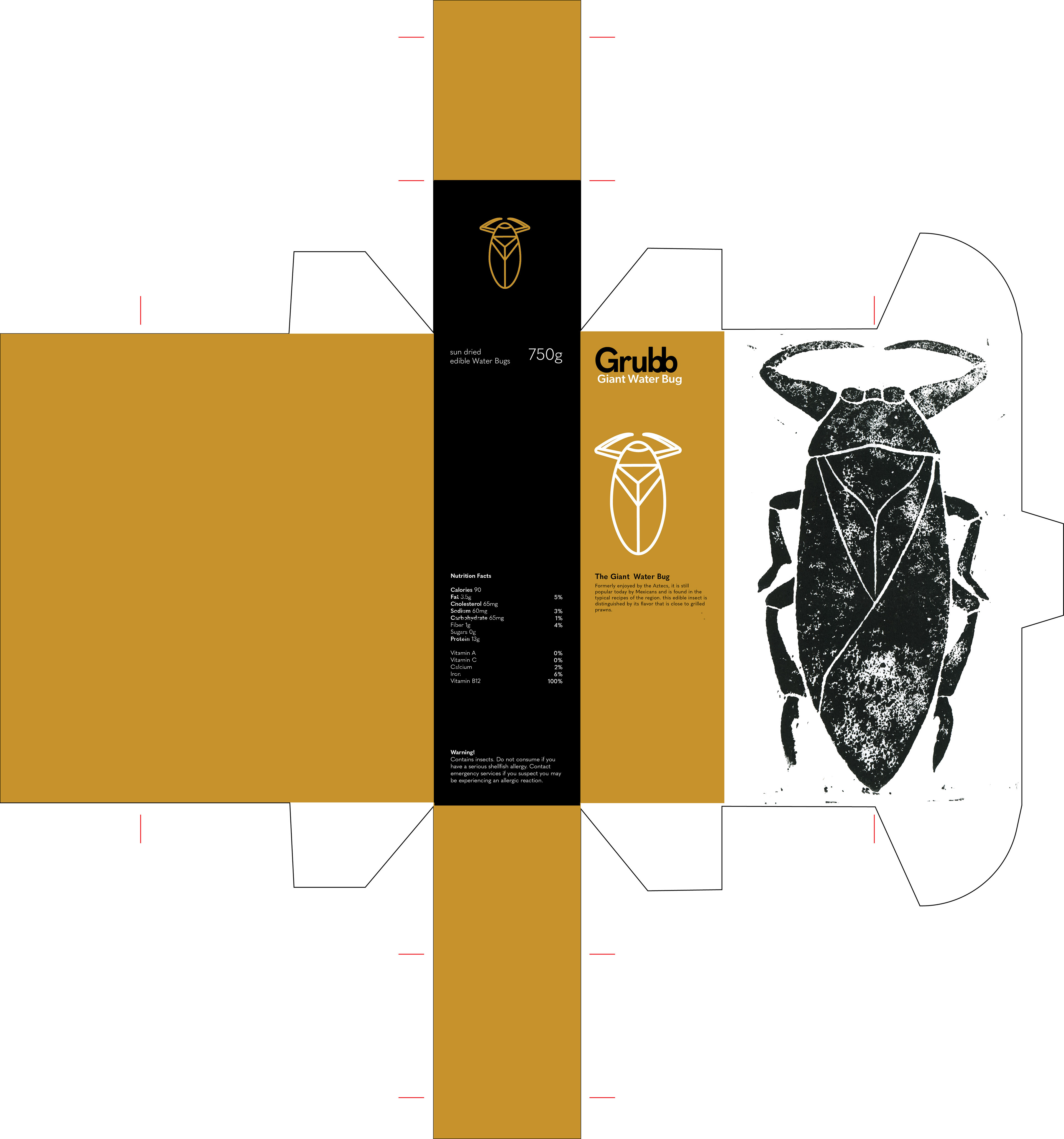 During my research, I discovered that the majority of harmful carbon waste produced is caused by livestock production, distribution, and consumption. The Food and Agriculture Organization of the United Nations suggested insect consumption as an ecologically viable alternative. However, there is the problem of convincing the public to try eating bugs. The Grubb brand addresses this environmental problem by introducing insect consumption as a healthy, eco-friendly alternative protein source into a population that otherwise may be opposed to insect consumption. The meal kit would provide ingredients and recipes for insect-based meals as a way of introducing insect consumption to the public.