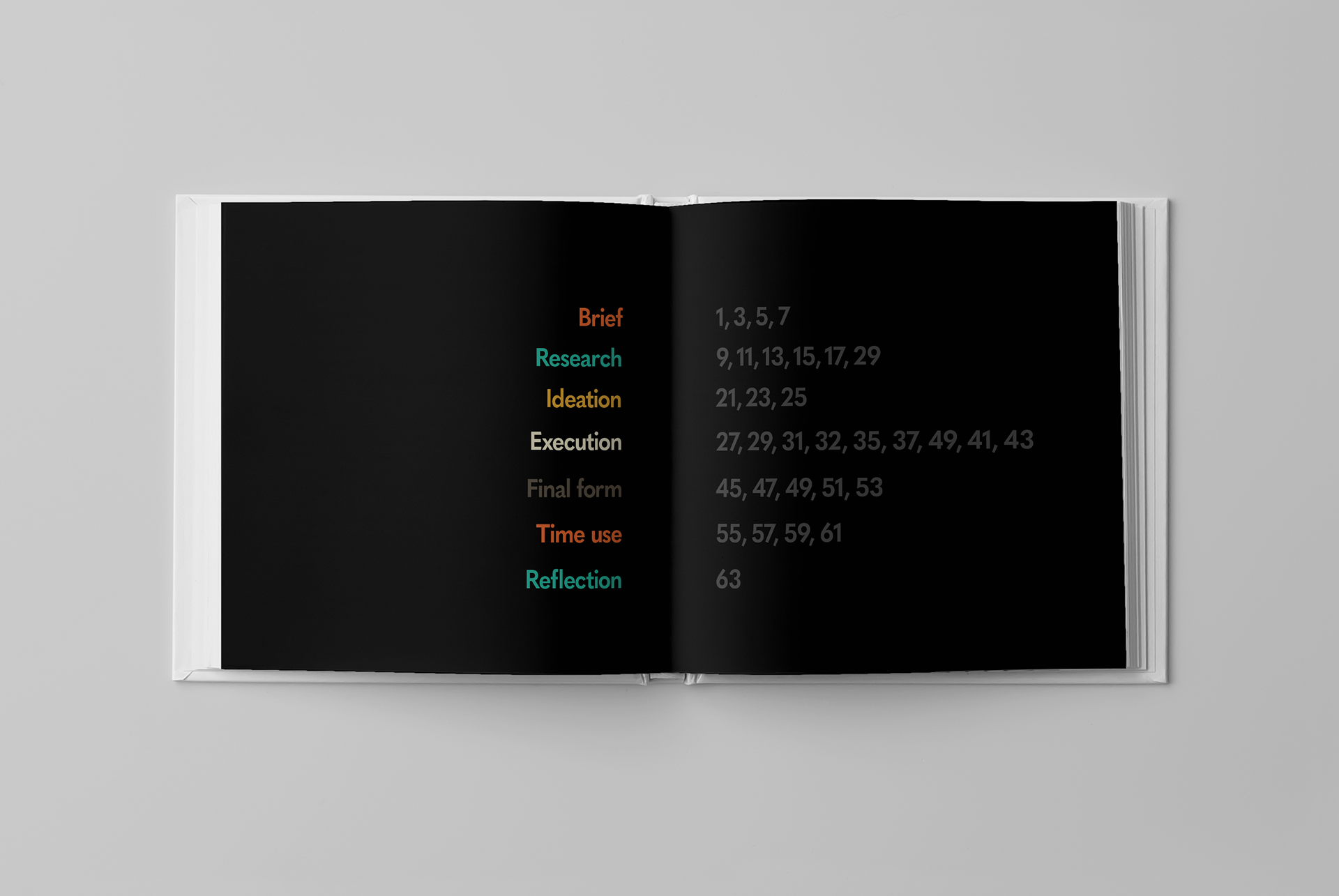 The purpose of the process book is to take the viewer through the design process from conception, ideation, and execution to the final design and deliverables.