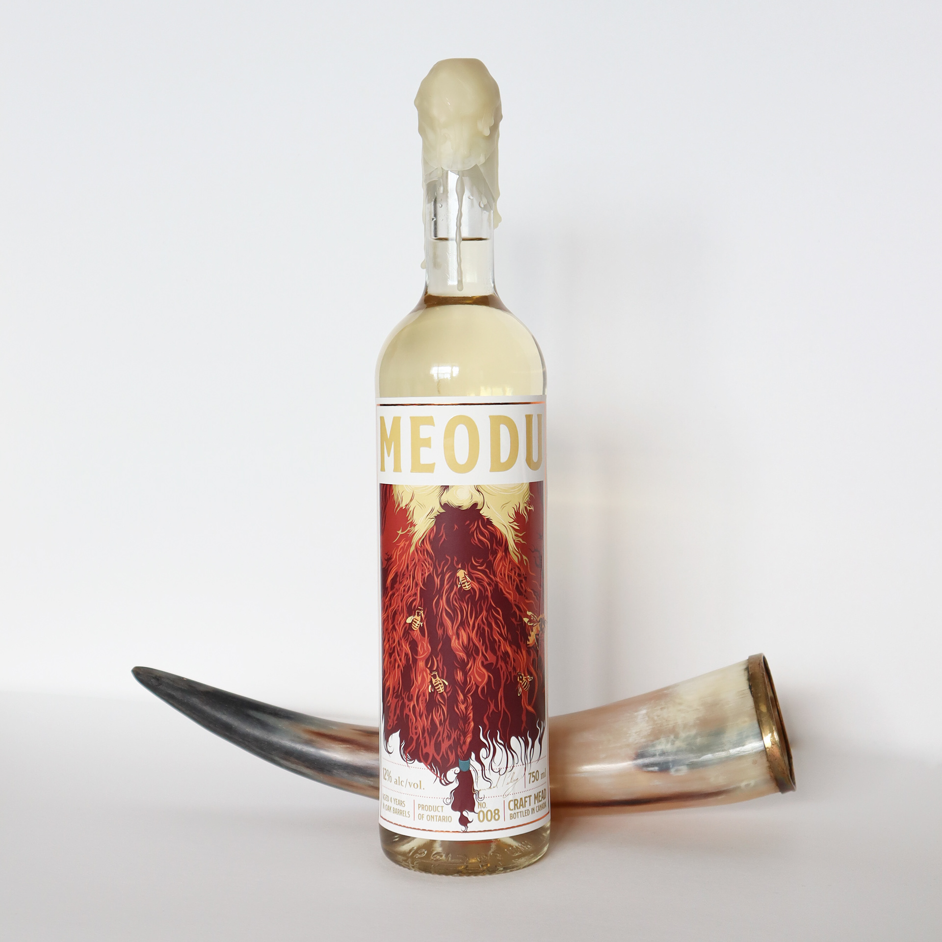 Printed as proof at last. After talking with the print company about my ideas for the production, Meodu's label ended up with a gloss finish on the logo and a metallic ink border. I also sealed the quark with real beeswax which I thought complimented the colour of the label and beverage quite nicely.