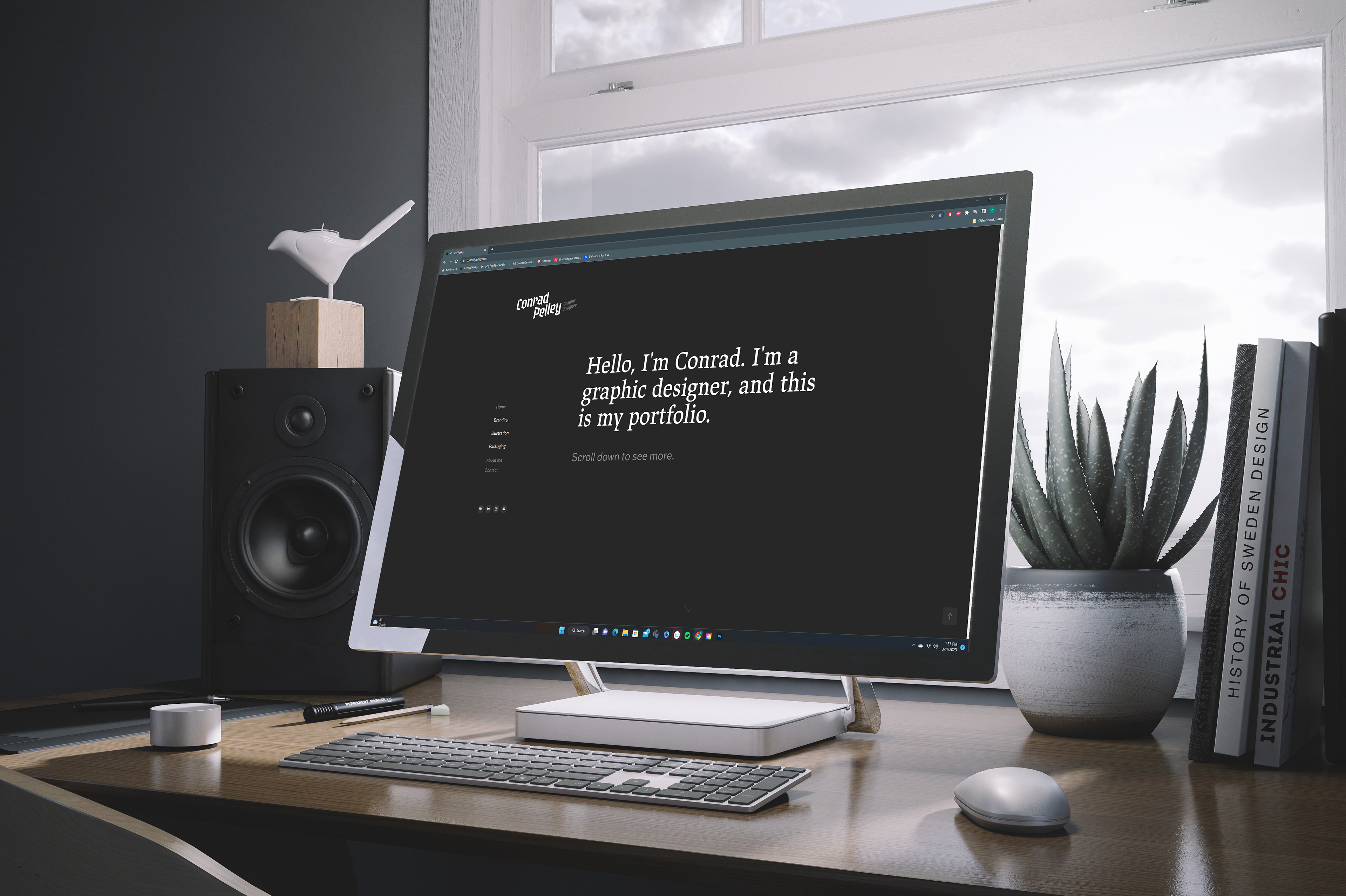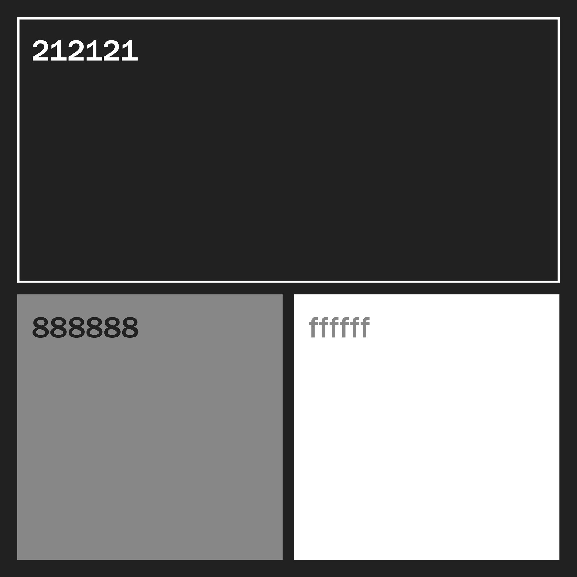 In any portfolio, the surrounding environment's colours will affect how a piece is perceived, both in tone and literally, as the human eye extracts information based on contrasts before interpreting their meaning. Because of this, most portfolios are coloured in neutral tones like black, white, or grey to avoid their work being contrasted against a colour hue. In a modern world that increasingly relies on digital technology, screen time becomes an unavoidable part of one's daily routine. "Dark Mode" originally started as an extension or option for browsers and software to make a user interface easier on the eyes at night. However, dark modes have become increasingly popular for general use during the day, as users find it less strenuous on the eyes regardless of the time of day. What might have initially seemed like an unpopular decision to cote a digital space in oppressive, forboding darkness has now become a source of comfort for those who occupy a predominantly digital world. This concept was the inspiration for my brand colours.