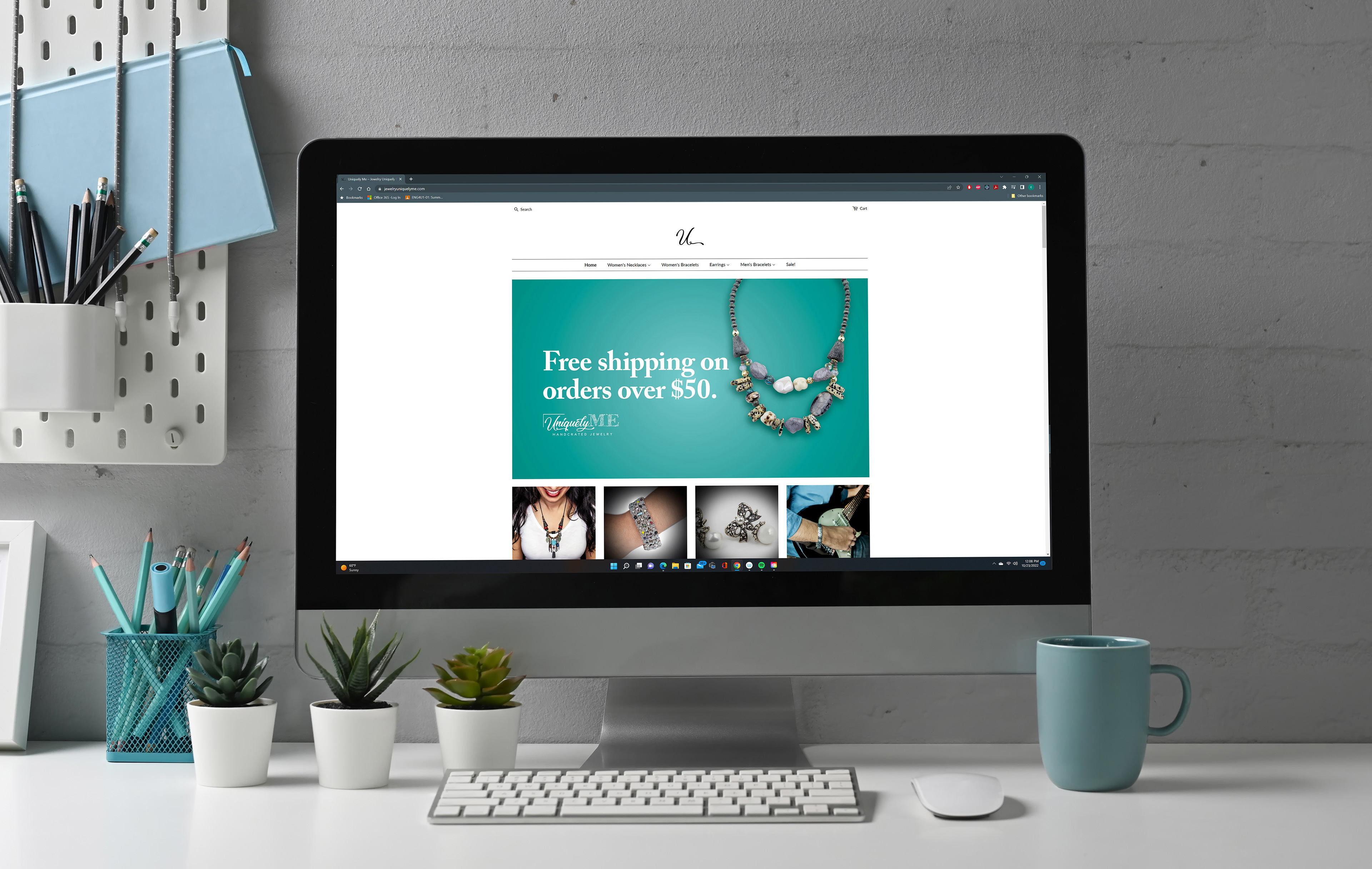 Jewelry Uniquely Me is a women's jewelry brand that operates under Atron Electro Industries Inc. My job is to update the web banners and social media with info on new sales and promotional material using assets from the company's library while maintaining visually consistent branding.
