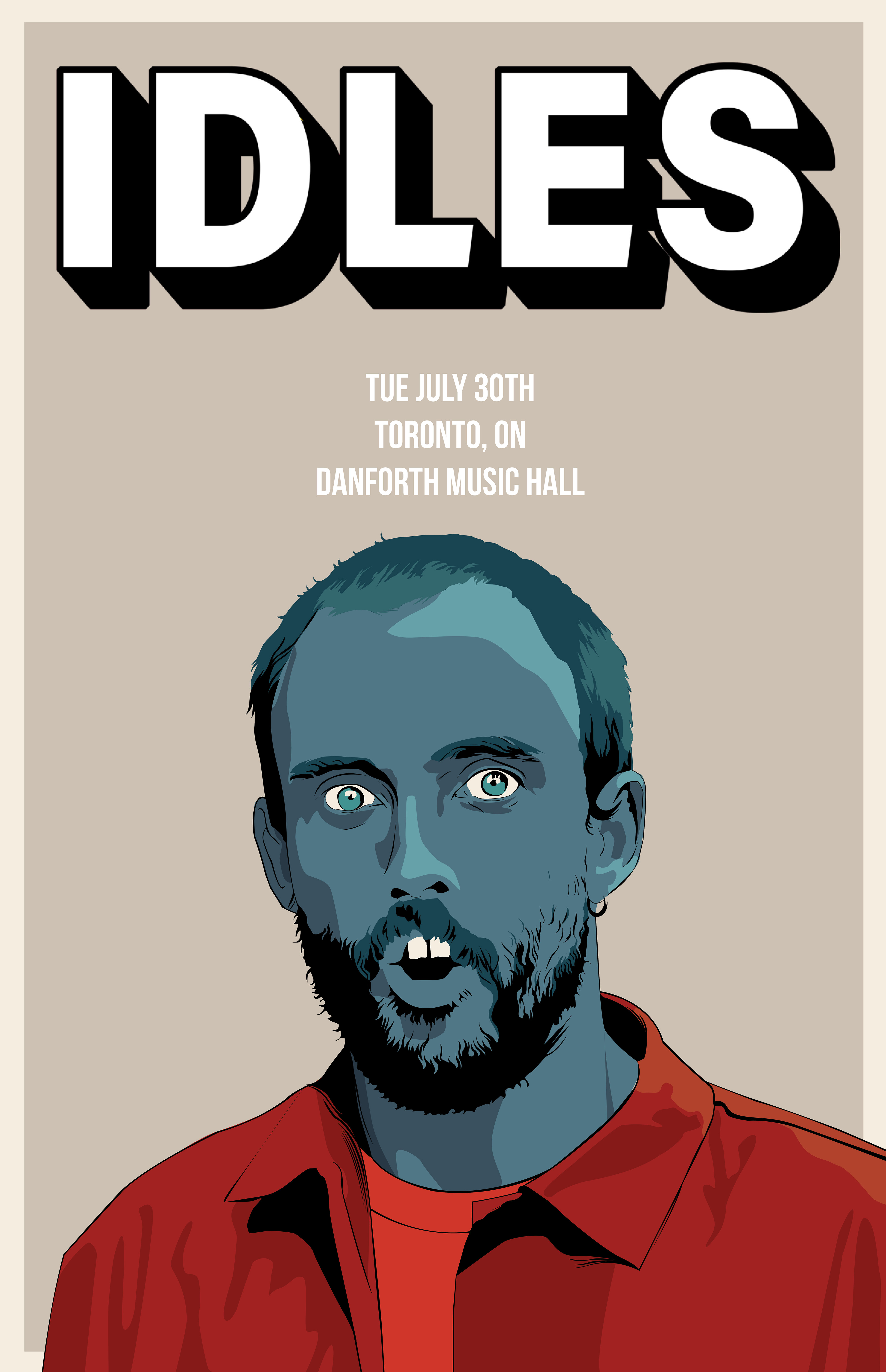 IDLES was a poster design I did out of anticipation for the band to come to Toronto. The poster includes the band’s logo, the date and location of the show and the illustrated likeness of the band’s singer Joe Talbot.